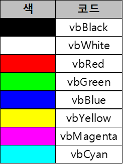 Color 내장 상수(기본)_vb