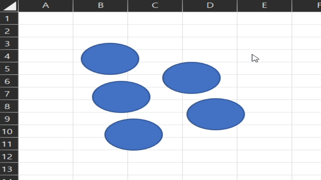 - 셀 범위를 선택했을 때 범위 안에 도형이나 이미지가 완전에 포함되는 경우 선택됩니다.