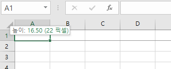 - 워크시트 기본 행 높이 : 16.50(22픽셀)