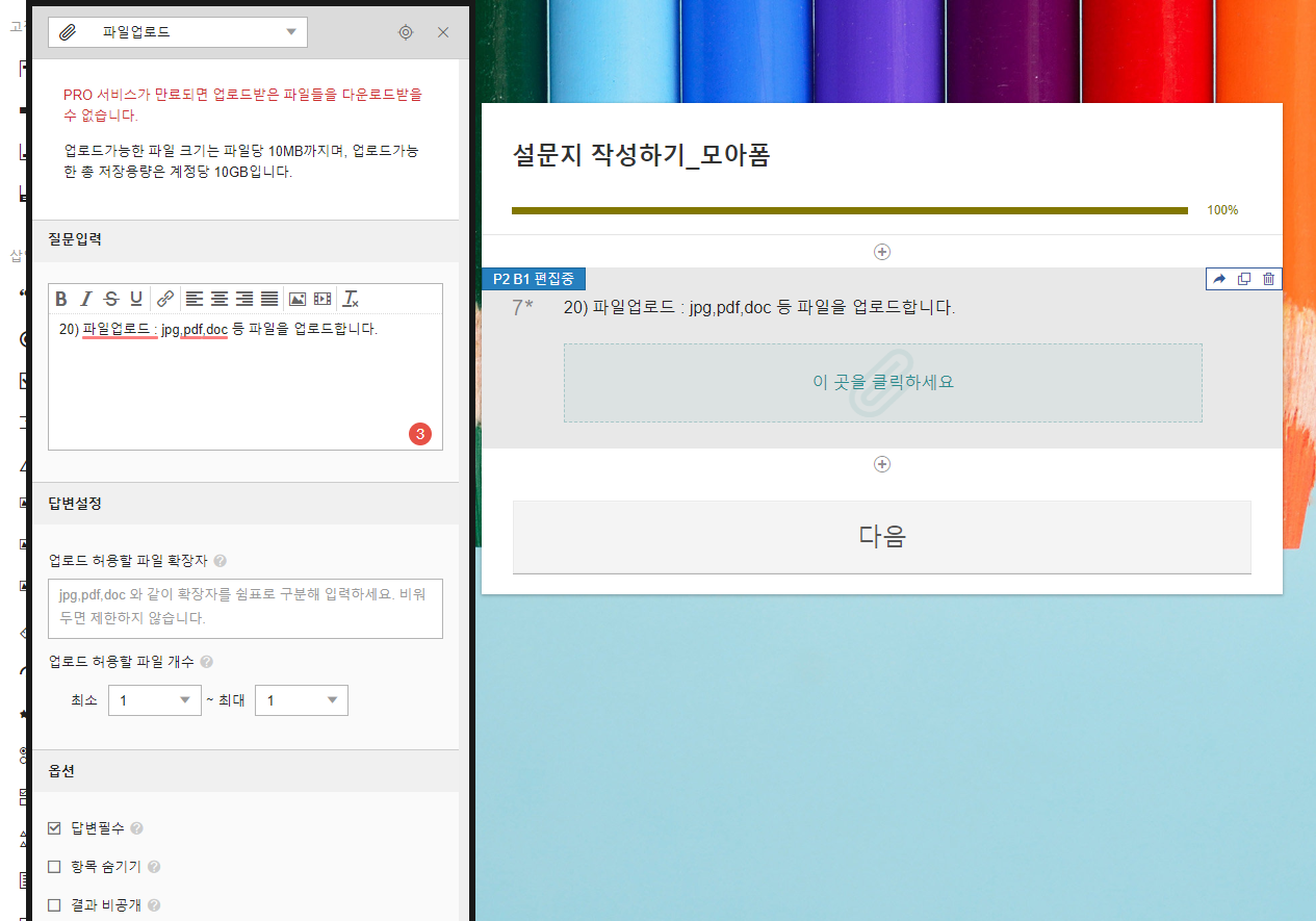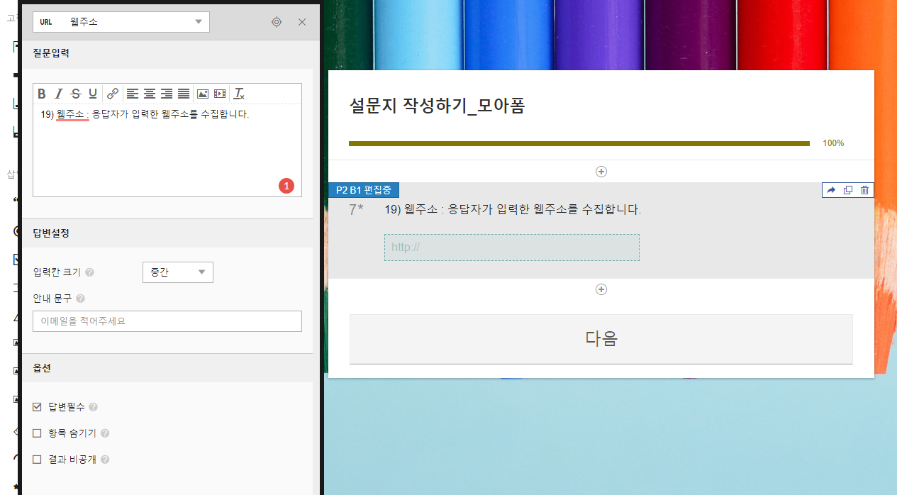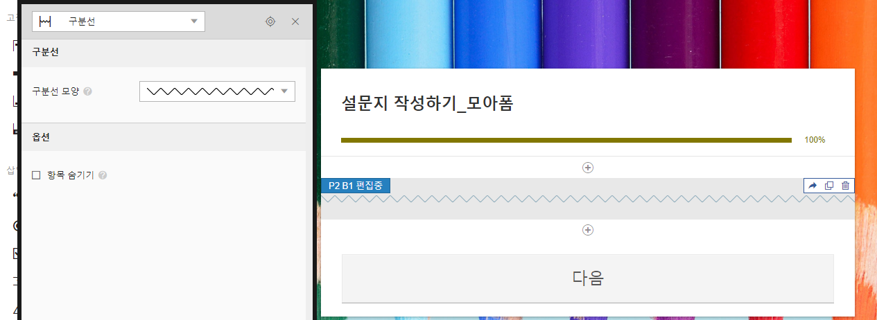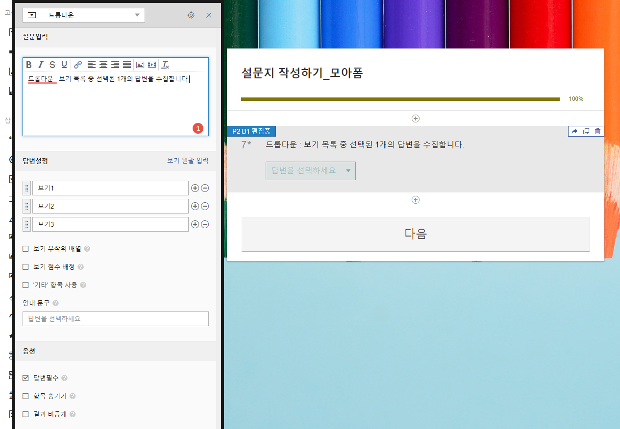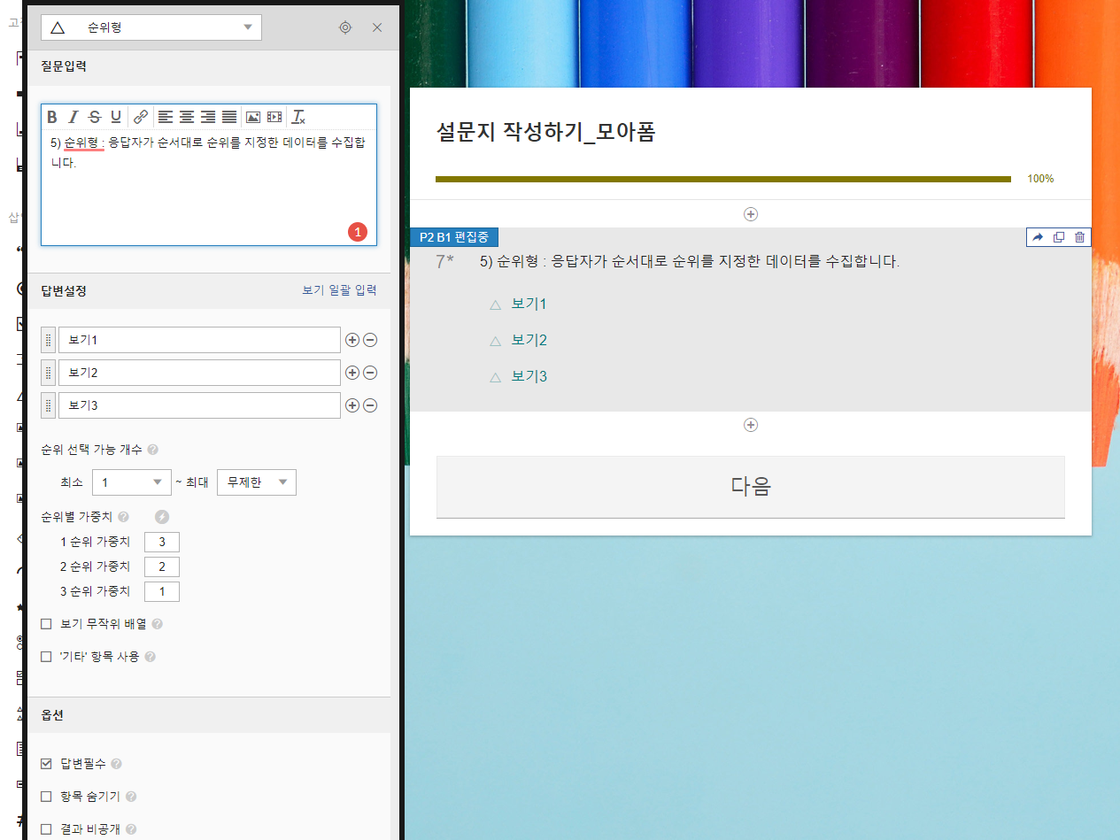 설문 작성자가 설문지를 직관적으로 만들 수 있도록 잘 구성되어 있으며