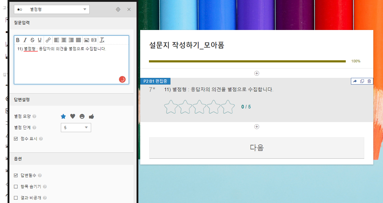 11) 별점형 : 응답자의 의견을 별점으로 수집합니다.