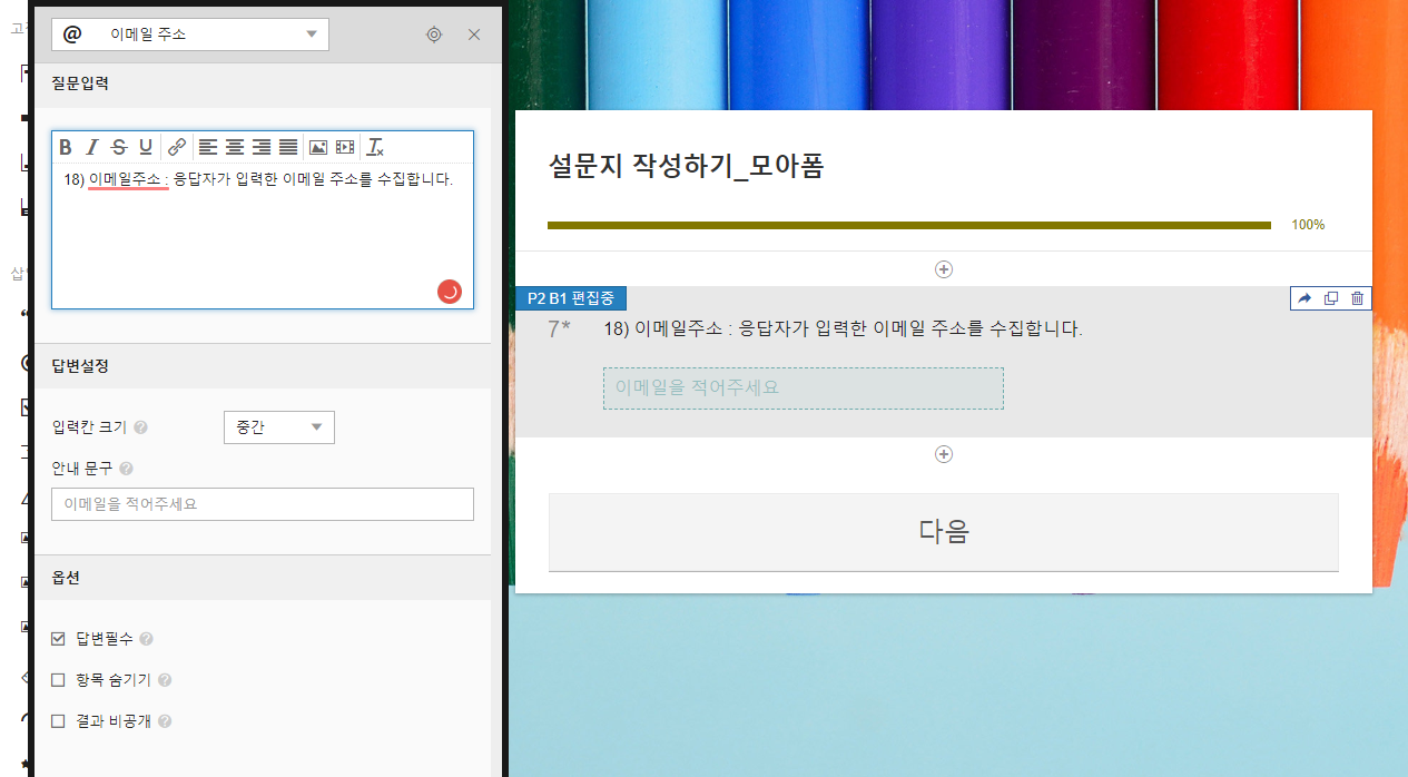 18) 이메일 주소 : 응답자가 입력한 이메일 주소를 수집합니다.