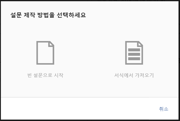 - '새 설문 만들기'에서 '빈 설문으로 시작', '서식에서 가져오기'를 선택할 수 있습니다.