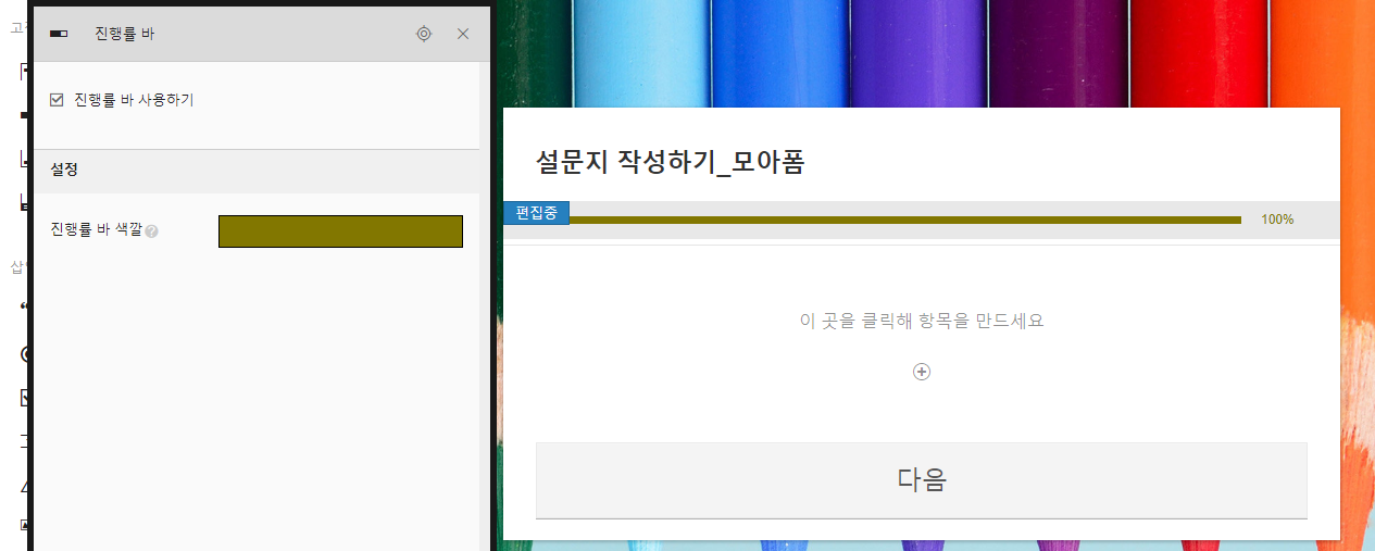 2) 진행률 바 : 설문조사의 진행률을 바 형식으로 표시합니다.