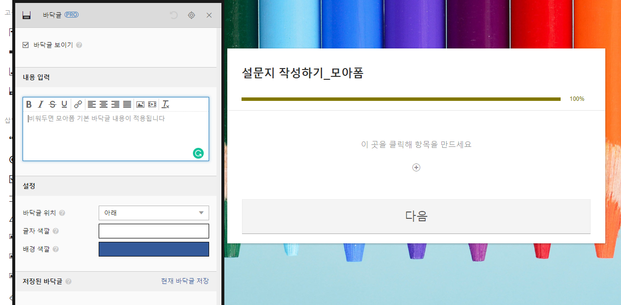 4) 바닥글 : 설문자 최하단에 표시되는 바닥글을 편집합니다.