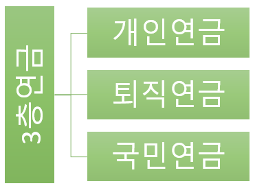 일반적인 직장인이 준비할 수 있는 연금은 국민연금 , 퇴직연금, 개인연금이 있음